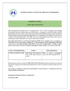 The promoters and/or owners of CASH ADVANCE LOANS are therefore directed to cease and desist from engaging in the said unlicensed activities, which constitute an offence under the Laws of Belize.