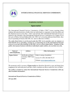 The promoters and/or owners of Sigma-Market are therefore directed to cease and desist from engaging in the said unlicensed activities, which constitute an offence under the Laws of Belize.