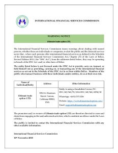 The promoters and/or owners of Ultimate Trade Option Ltd. are therefore directed to cease and desist from engaging in the said unlicensed activities, which constitute an offence under the Laws of Belize.